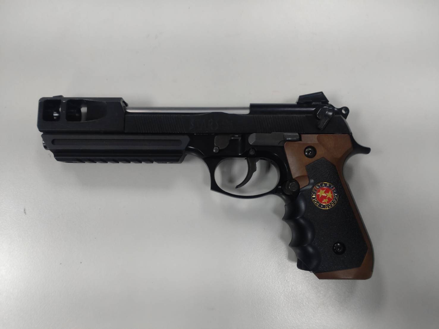 ▲二水鄉謝姓男子因不滿競選宣傳車太吵,在某組總統及立委候選人聯名競選宣傳車經過他家門前,持空氣槍對空鳴槍,警方起出做案BB槍、氣瓶及塑膠BB彈。