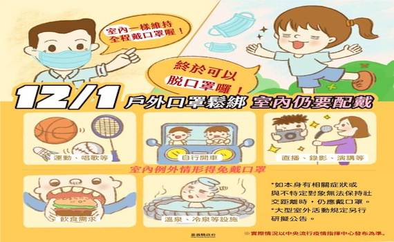 COVID-19/口罩政策要鬆綁了!12月1日起室外免戴口罩 三條件下仍要戴