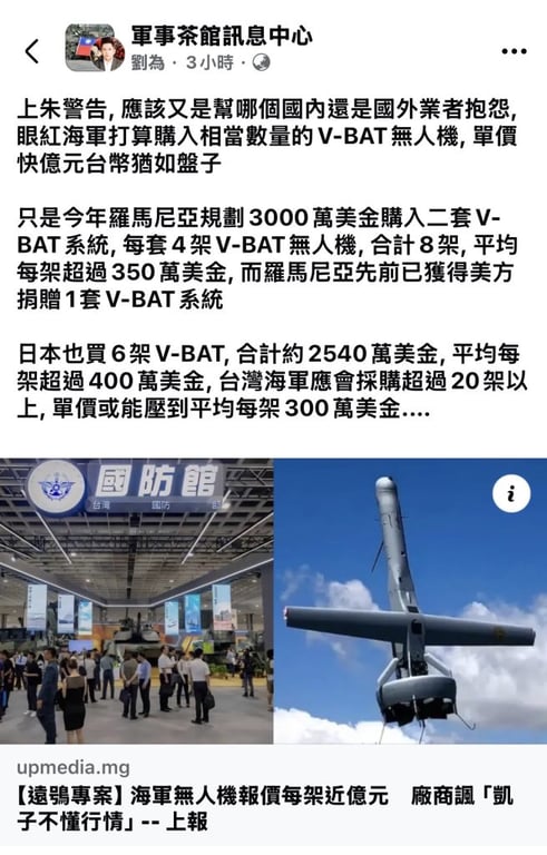 海軍無人機【遠鴞專案】遭廠商譏諷「盤子」 軍事迷公開他國採購同款無人機價格直指廠商「眼紅」