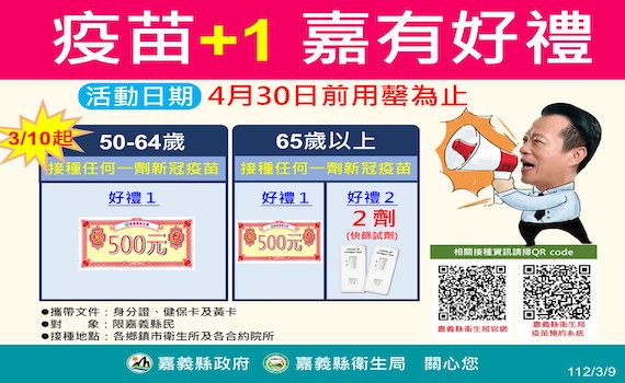 清明連假疫苗接種不打烊 嘉義縣50歲以上打疫苗贈500元禮券
